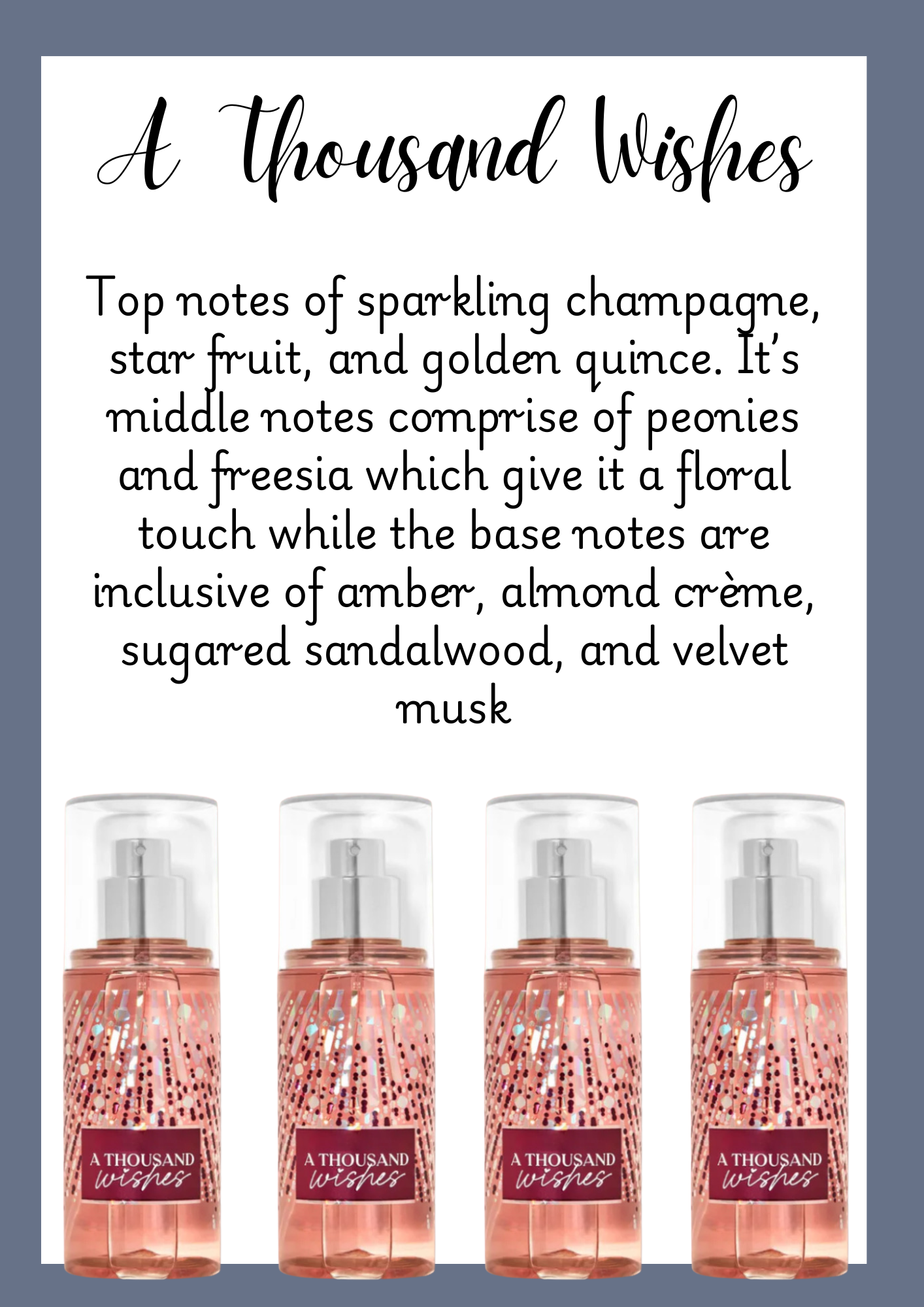 Our version of the popular bath & body products. Similar in style and identity to the famous designer fragrance.