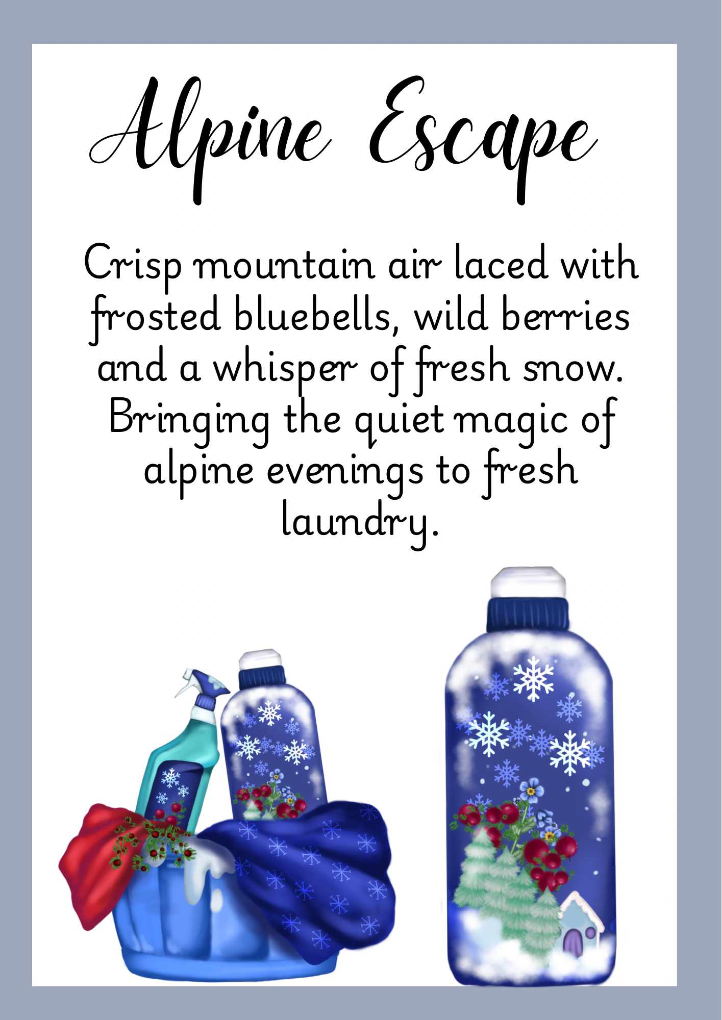 A beautiful dupe of the new Mrs Hinch winter fabric conditioner. Crisp mountain air laced with frosted bluebells, wild berries and a whisper of fresh snow. Bringing the quiet magic of alpine evenings to fresh laundry