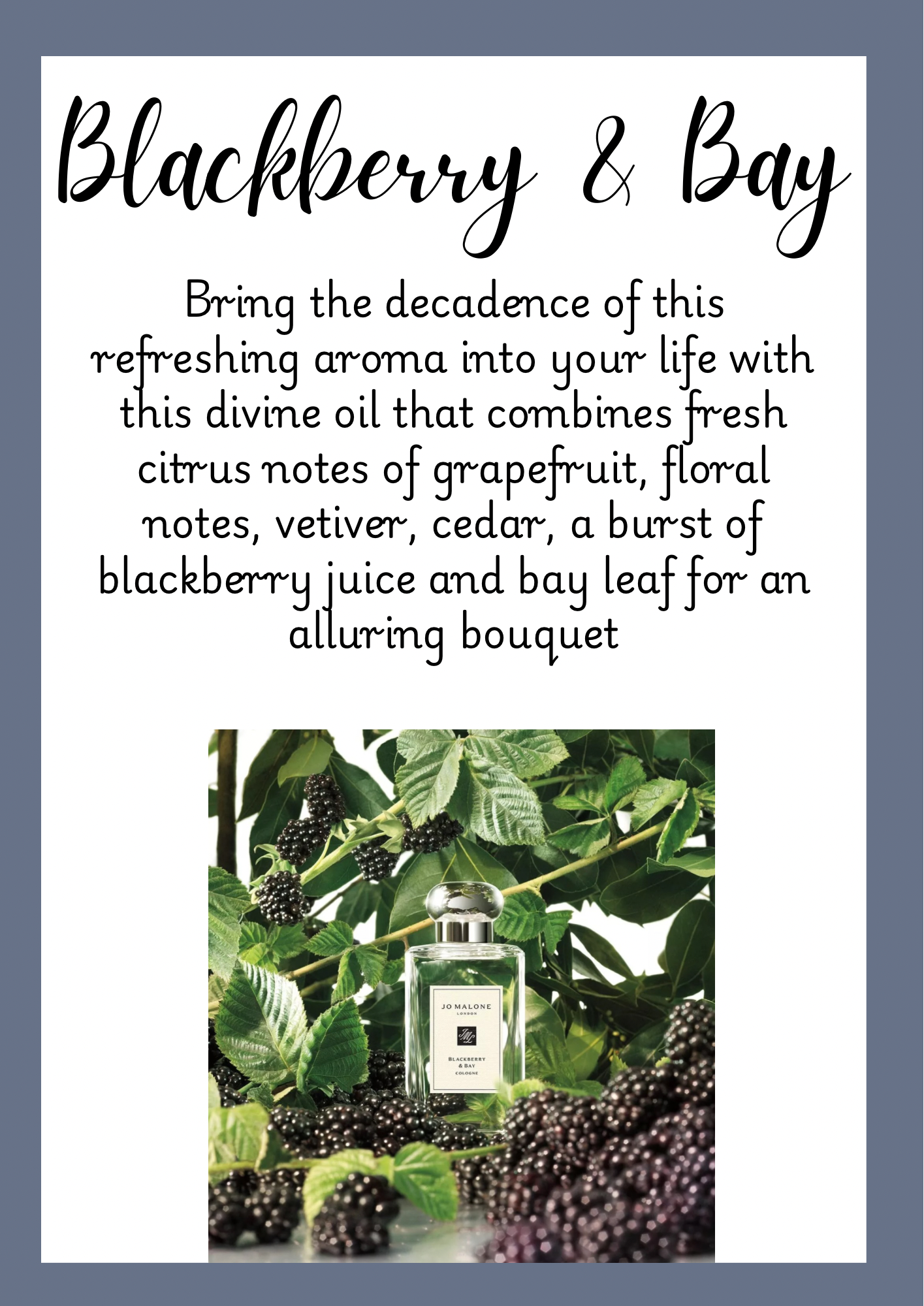 A fresh floral fragrance with blackcurrant, lemon and green leaves leading to a heart of lily of the valley and precious woods. A beautiful dupe of the well known fragrance